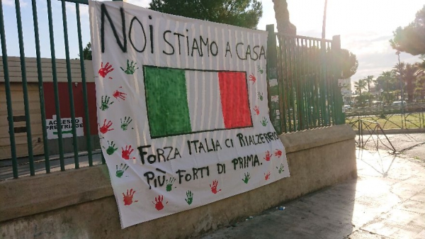 un abbraccio forte dove abito io ,piccolo paesino ( provincia di Pesaro Urbino) tutti fuori nei giardino o nei terrazzi.Siamo un paesino di musicisti, molti suonano nella Banda Musicale per cui sono usciti con clarinetti e trombe suonando l'inno e altre canzoni.