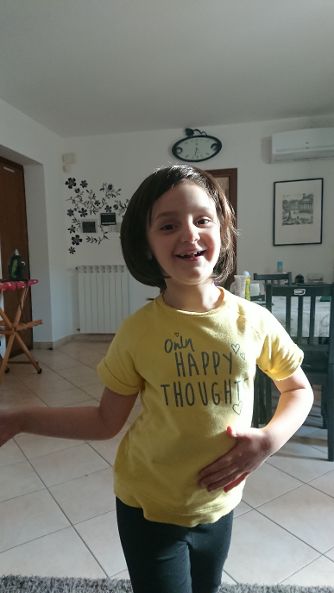 Ma oggi sono felice perché mi è arrivata la parrucca! Non pensavo fosse così carina! L'ha voluta provare anche Rebecca, che risate!! Che bello!!! Ci fai vedere il nuovo look? Sono contenta che ti piaci e che piace anche alla piccola Reby!