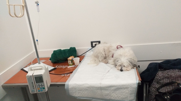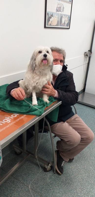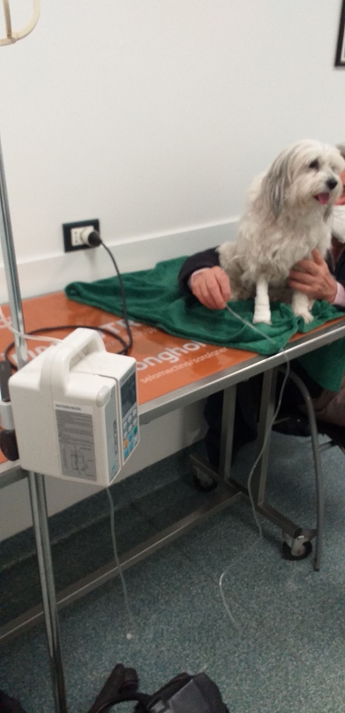 Oltre al lavoro ho fatto i turni con Stefania per assistere Mina ricoverata in oncologia . Purtroppo ogni 2-3 anni si risveglia il suo Linfoma Gastrico che ci costringe a nuove indagini e terapie intensive. Poi tutto torna normale e Mina , circondata da coccole e tanto amore , che ripaga con gli interessi , torna ad una vita normalissima.E' un Coton De Tulear, abbandonato in una estate di oltre 10 anni fa , pur se cane di razza ricercato . Era conciatissimo al punto che più di un veterinario ci diceva " morirà presto di cancro " ed io replicavo ...ma