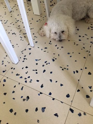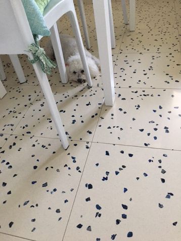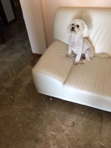 ho mandato alcune foto di Milù appena è uscita dalla toelettatura con due nastrini sulle orecchie che tempo dieci minuti sono spariti, si è nascosta per non farsi fotografare e in qualche modo l'ho beccata. Sinceramente a me piace tutta ciuffosa ma fa troppi nodi e allora bisogna tenere il pelo corto. Inutile dire che la toelettatrice è disperata perchè non sta ferma e mi consiglia di darle qualcosa di calmante, la veterinaria è contraria e poi...... quando la lavo io sta buona e serena vabbè a forza di biscottini..... caggiafà