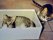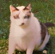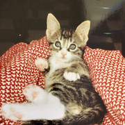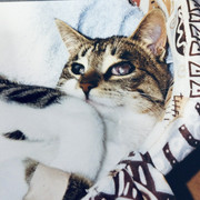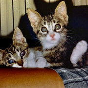 Tina e Artù li ho recuperato sul ciglio di un canale, vicino al cimitero. Era il 1 luglio del 2000. Entrambi con la clamidia . Avevano, secondo il veterinario, poco più di dieci giorni. La piccola è rimasta semi cieca, ma si muoveva benissimo. Era pazza e simpaticissima. Artù un vero patatone. Bellissimo, imponente. Un gattone molto grande con un pelo foltissimo e ciuffetti sulla punta delle orecchie, ma era di una dolcezza estrema. Non sono stati gatti facili, si portavano i segni dell'abbandono precoce e della disabilità fisica, ma hanno dato tantissimo amore, anche a mia mamma che di fatto se ne occupava.