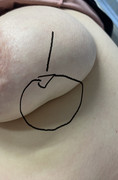 2) Con la mano libera usi il polpastrello dell'indice per tirare verso l'alto quella porzione di mammella che lei ha segnato con la freccia.