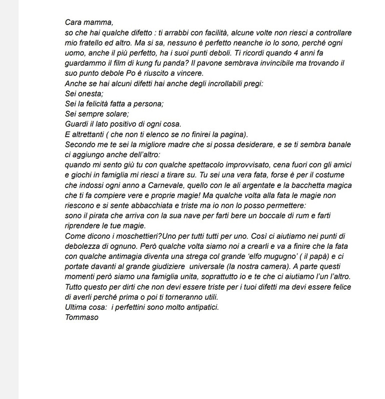 vi avevo promesso la lettera di mio figlio , naturalmente ho chiesto il suo consenso e lui mi ha detto " Mamma, puoi condividerla con tutto il mondo!" Come mi conosce bene mio figlio!!