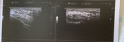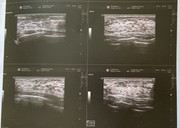L'esame ecotomografico delle regioni mammarie, eseguito con sonda ad elevata frequenza da 12 Mhz e 18 Mhz risoluzione, mediante scansioni radiali lungo il decorso dei dotti galattofori ha visualizzato bilateralmente un regolare profilo dermo-epidermico.