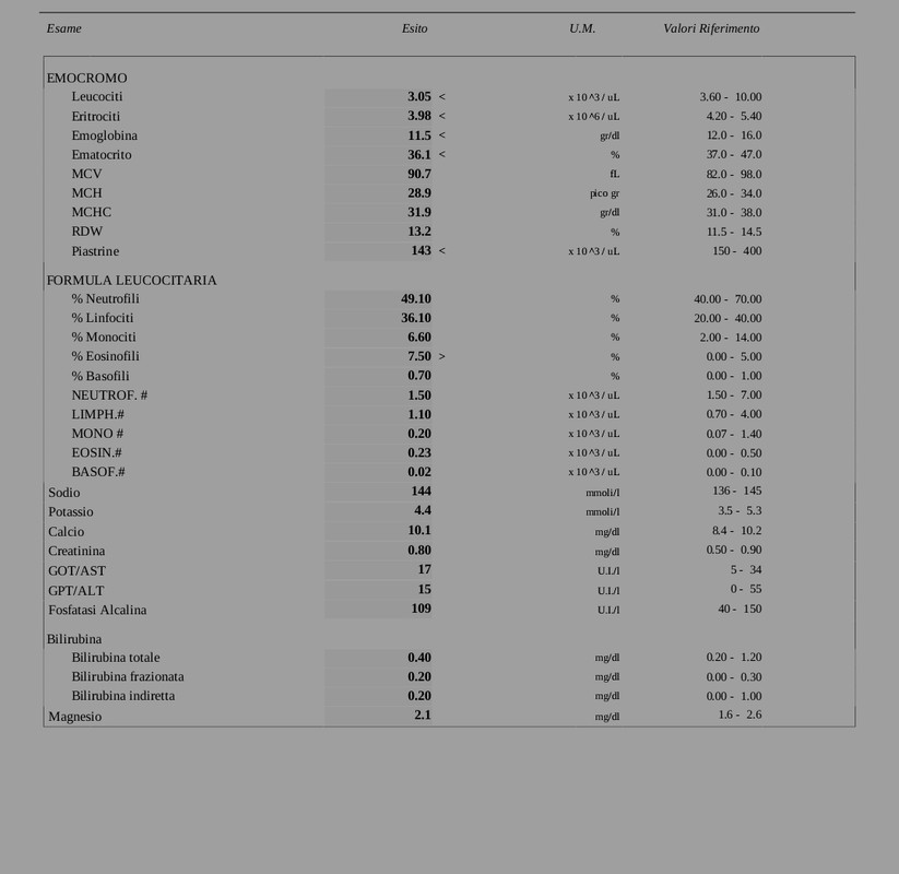 🌟 Angy65 per analisi del sangue. Primo controllo post chemio