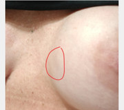 Da diversi mesi ormai noto come un'ombra che mi pare una leggerissima rientranza sul seno dx parte interna , quadrante interno inferiore direi.