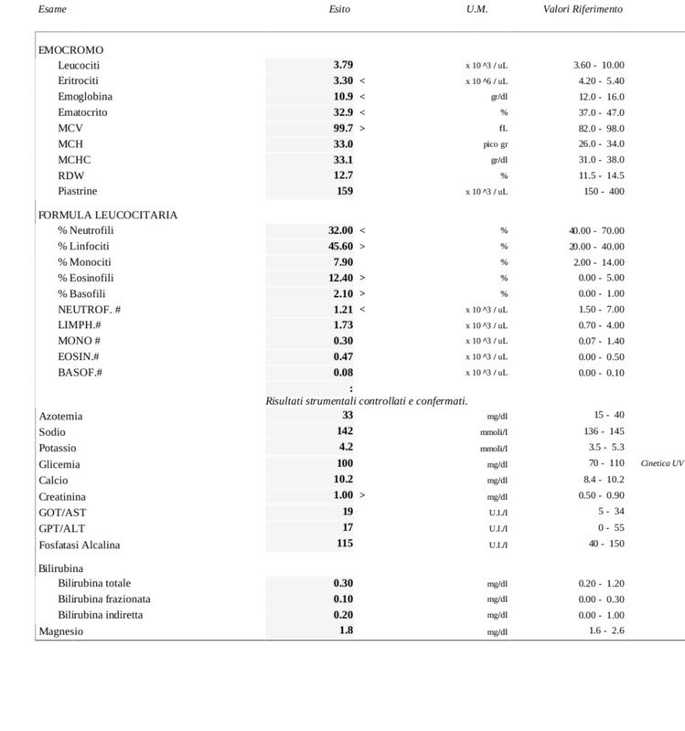 Volevo chiederle se ci sono controindicazioni a fare un volo aereo di 3 ore con questi valori del sangue(analisi di inizio giugno, le devo rifare a metá luglio)