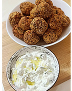 Accompagno queste polpette croccanti fuori e morbide dentro con della salsa tzaziki.