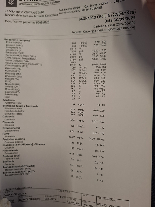 Ma sin qui non c'è alcun sospetto in senso oncologico